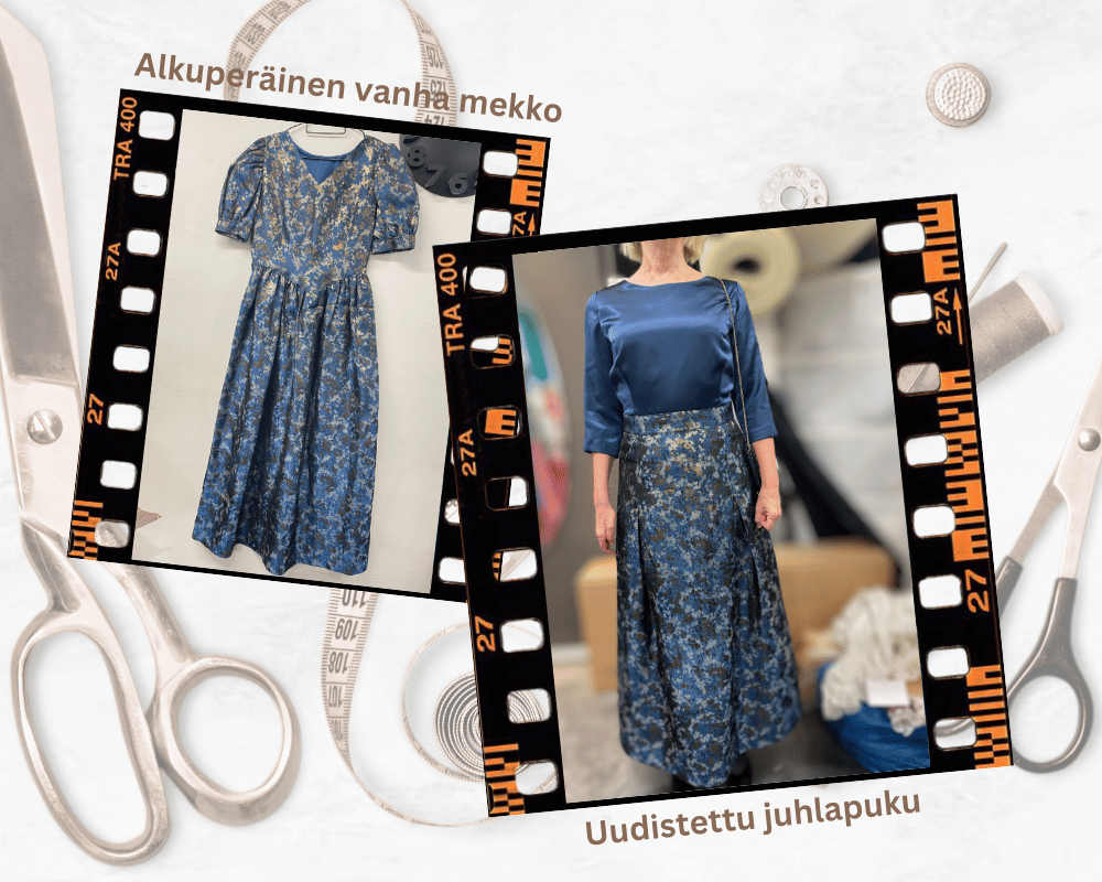 Moni asiakkaamme on ihastunut palveluun, jossa hän teettää lempivaatteestaan uuden version. Otamme lempivaatteesta kaavat, teemme mahdolliset kaavamuutokset ja valmistamme samanlaisen. Asiakkaan kaavat säilyvät meillä tallessa ja hän voi teettää samalla kaavalla useita erilaisia. Materiaalia vaihtamalla saa samalla kaavalla teetettyä niin arkisen, kuin juhlavankin version, joka istuu aina täydellisesti.